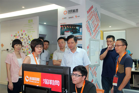 在考察中,賴?yán)^秋副市長通過環(huán)球鞋網(wǎng)、淘鞋網(wǎng)宣傳視頻以及淘鞋網(wǎng)實時銷售展示系統(tǒng)等,充分了解了訊網(wǎng)科技的電子商務(wù)服務(wù)模式。賴?yán)^秋副市長說,龍巖是革命老區(qū),不僅有著深厚的文化歷史底蘊,近些年來的經(jīng)濟發(fā)展也同樣令人矚目。隨著互聯(lián)網(wǎng)時代的到來,龍巖的電子商務(wù)也在發(fā)展,但規(guī)模小,較為零散,沒有形成產(chǎn)業(yè)集群優(yōu)勢和良好的電商氛圍,龍巖林竹、茶業(yè)、薯業(yè)等六大重點產(chǎn)業(yè)和蘭花、漳平水仙、咸酥花生等七大特色產(chǎn)品,仍有很大“走出去”的空間。此次來訪,訊網(wǎng)科技在聚合產(chǎn)業(yè)資源優(yōu)勢,引領(lǐng)傳統(tǒng)鞋企運用電子商務(wù)的模式進行業(yè)務(wù)拓展上取得的成果讓人印象深刻,這種模式值得龍巖借鑒。