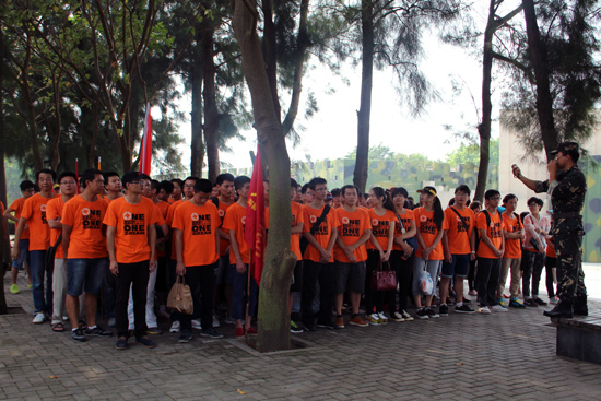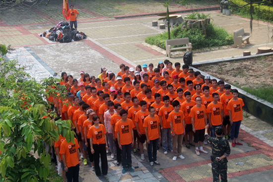 當天抵達大嶝島后,整個大團隊被分成兩個連隊:“尖刀連”和“英雄連”,并分成了八個小隊。首當其沖迎接所有員工的就是教官嚴格的軍訓。一個口令,一個動作,都必須執(zhí)行到位。一開始團隊因為不適應還帶著點懶懶散散,教官不留情面,直接處罰,命令所有人抱頭蹲地,原地蹬腿。接著又因為集合拖拉,全員罰做俯臥撐。經(jīng)過一番雕琢后,我們的大團隊拿出了應有的紀律和氣勢,走入了下一個環(huán)節(jié)。