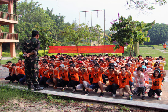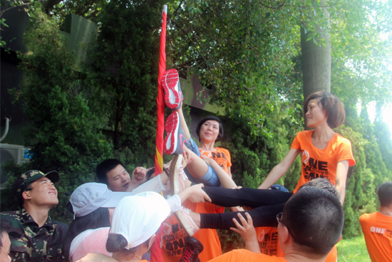 稍事休息后,拓展項目就算開始啦!由于訊網(wǎng)科技的四個成員團隊彼此之間較少接觸,所以第一個環(huán)節(jié)就是團隊建設。小隊之間的成員自我介紹,并推選出隊長和隊花,隊長是血氣方剛的大老爺們,隊花就是我們貌美如花的女副隊長們!而教官召集了8個隊長和隊花,分配了第一個項目——團隊展示:用8分鐘的時間想出隊名、口號、隊歌、LOGO,而且要進行至少有三人處于浮空狀態(tài)的展示亮相!這讓每個小隊都忙開了花,但訊網(wǎng)科技的小伙伴們都有很有才,沒一會兒,大家就想好了一切。于是,8個小隊:狼牙隊、猛龍隊、小蘋果隊、蘋果隊、狂風隊、齊心隊、戰(zhàn)神隊、八路隊一一亮相!