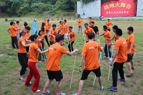 “不倒森林”是個同時考驗了團隊默契信任與個人心態(tài)反應的項目。每個小組所有成員圍成一圈,一人用手心撐住一根桿子,同時放掉并接住右手邊的隊友放下的桿子,并循環(huán)一圈。項目練習時,各個小組都善于觀察,分析問題,找出了一種符合自己團隊節(jié)奏的方法。而項目結束后,各個小組還派出了一個代表人發(fā)言,如何從這個項目中吸取經(jīng)驗總結,并應用到實際的工作中去。