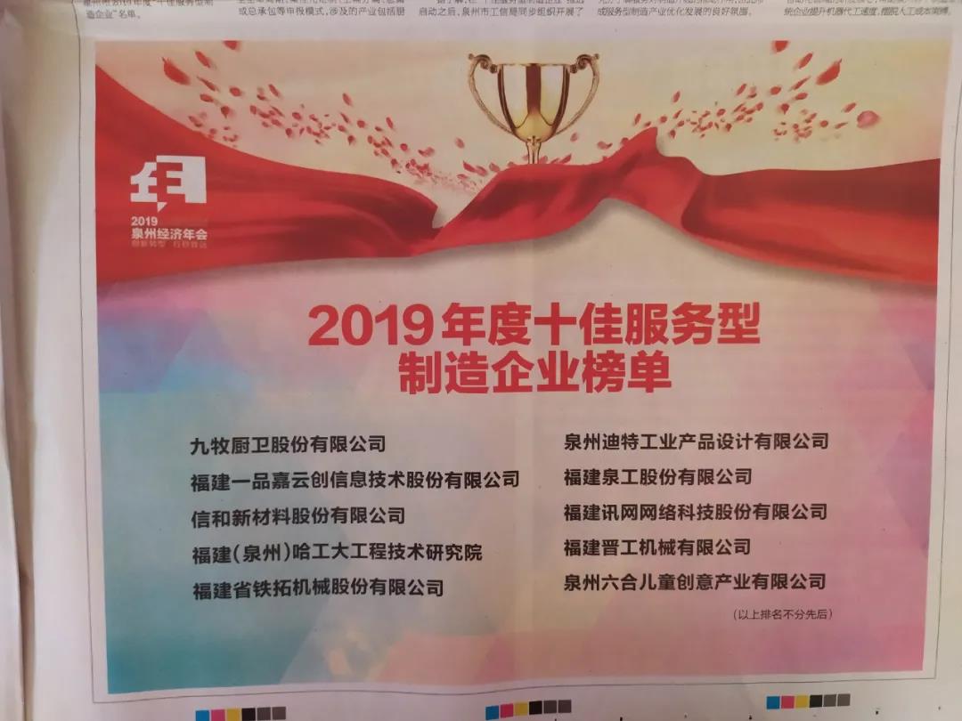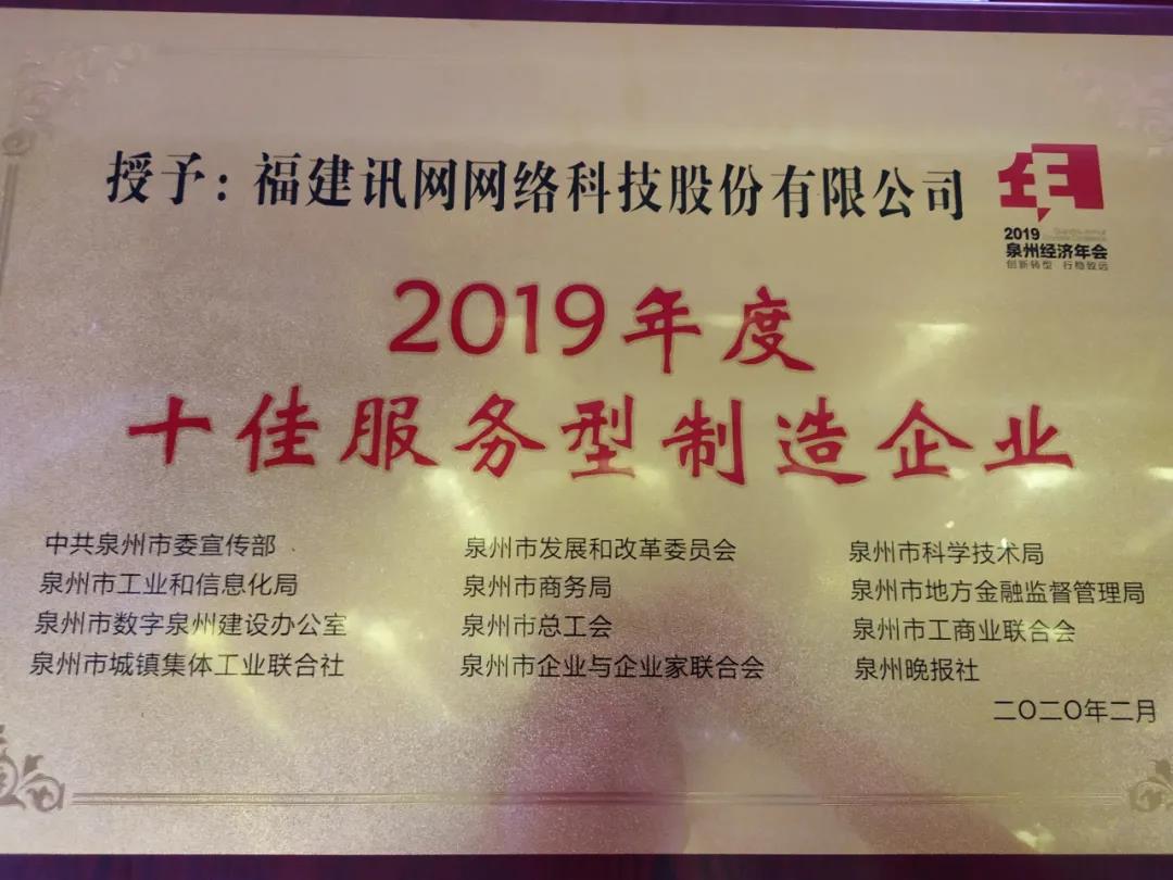 在2019泉州經(jīng)濟年會上,福建訊網(wǎng)網(wǎng)絡科技股份有限公司(簡稱“訊網(wǎng)網(wǎng)絡”)榮獲“2019年度十佳服務型制造企業(yè)”。