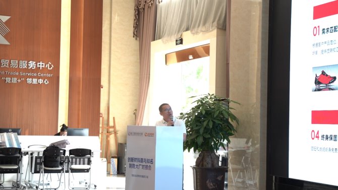 環球鞋網代表主辦方為大家一一介紹了本次對接會的創新材料商:康邦拓、佳南、鍇越、扭嗒、亞塑、華宇、中盛、炫龍、恒得利、泉榮。
