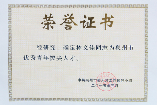 • 熱烈祝賀訊網網絡總經理榮獲泉州市十大優秀青年拔尖人才